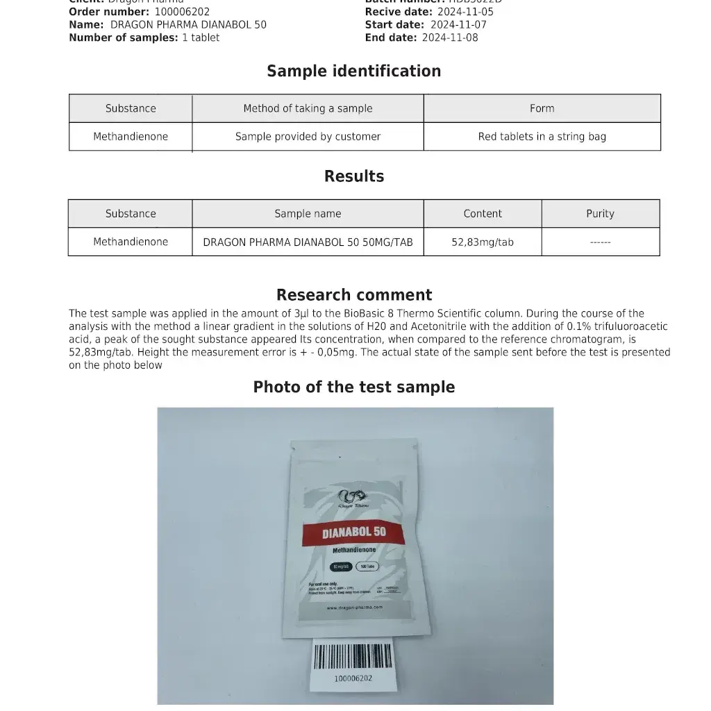 When you decide to buy Dianabol 50 USA, you are handling one of the most potent oral mass-building compounds available. The high concentration demands impeccable manufacturing standards to ensure accurate dosing and purity. Dragon Pharma meets this challenge with pharmaceutical-grade production and transparent third-party testing. The recent lab results (52.83mg, 55.05mg) demonstrate the product is consistently slightly over-dosed, which is actually a hallmark of a high-quality manufacturer ensuring you receive at least the labeled potency. This consistency and transparency mean experienced users can push their limits with confidence, knowing they have a reliable and potent tool for achieving extreme mass gains with Dianabol 50.